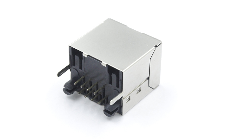 直立式带铁脚屏蔽RJ45母座材料: